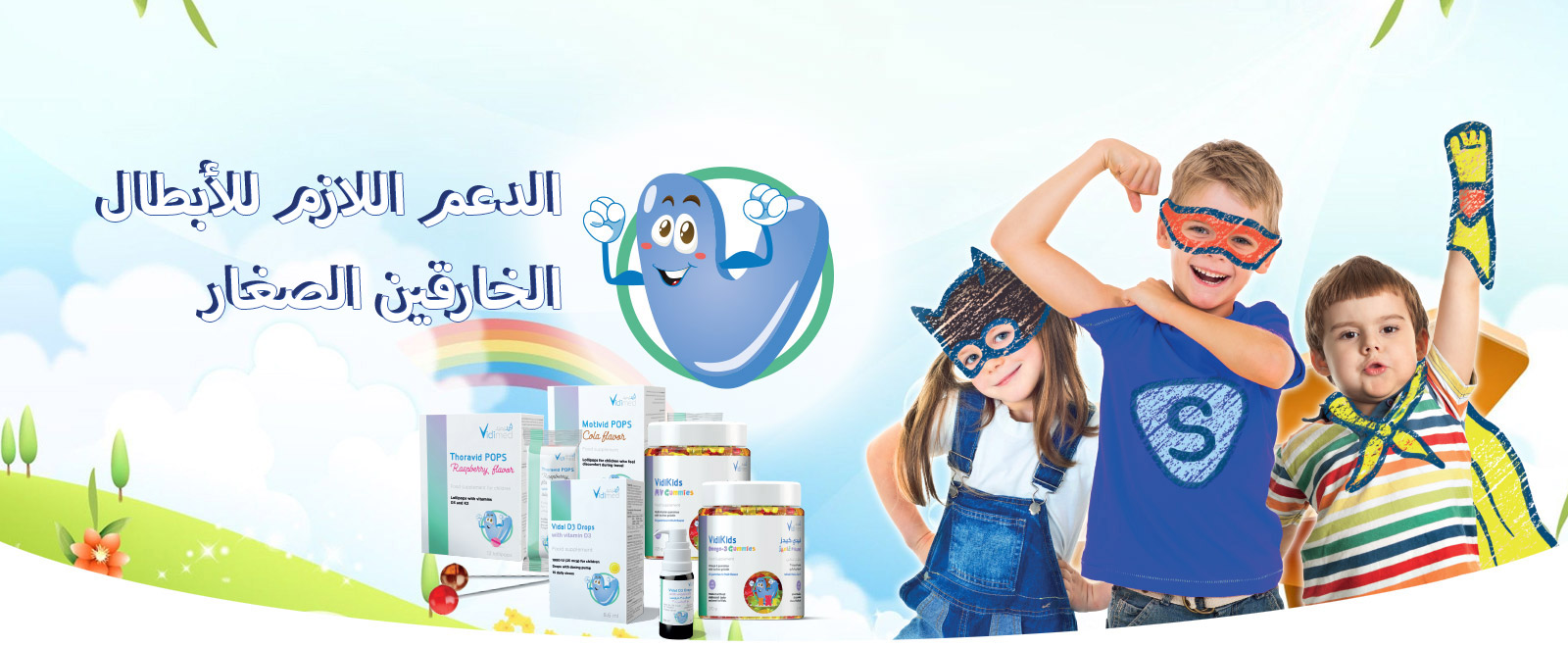 نحن نعلم مدى أهمية صحة طفلك وسعادته بالنسبة لكي ، لذلك قمنا بتطوير مجموعة كاملة للأطفال تعتني بجميع احتياجاتهم حتى تعتمدي على علامة تجارية واحدة لضمان راحة البال و لضمان توفير كل ما يحتاج إليه طفلك. كخبراء رائدين في تصنيع المنتجات الدوائية والمكملات الغذائية قمنا بتصميم الفيتامينات والمكملات الداعمة بأشكال وألوان مرحة تجعل البقاء بصحة جيدة متعة للأطفال. جرّبوا حبوب الفيتامينات المتعددة أو حبوب الأوميغا القابلة للمضغ من أجل نمو بشكل أفضل، مصاصاتنا لدوار الحركة وإلتهاب الحلق ، وقطرات فيتامين (د) لتقوية العظام. و أيضاً تم إطلاق مجموعة العناية بالجسم الخاصة بالأطفال وأول منتج من هذه المجموعة هو كريم للطفح الجلدي الناتج عن الحفاض و هناك الكثير من المنتجات الأخرى وأكثر إثارةً في المستقبل - وكلها متطورة علمياً على أعلى مستوى من الجودة لكي توفر لأطفالنا الرعاية والعناية الفائقة ، من الداخل والخارج .