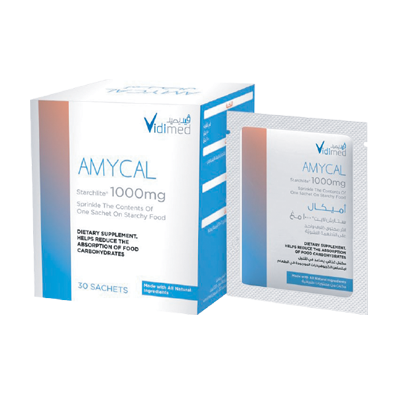 Amycal, a one of a kind product to fight Diabetes which has been launched in the Middle East. Amycal contains Starchlite – an extract made from white kidney beans that is 100% natural and when sprinkled over food or mixed with water, is scientifically proven to limit the negative impact of starchy foods on blood sugar and on your body.