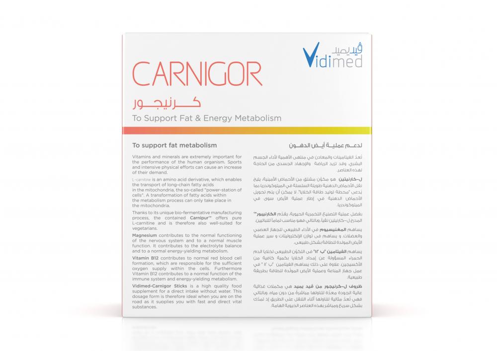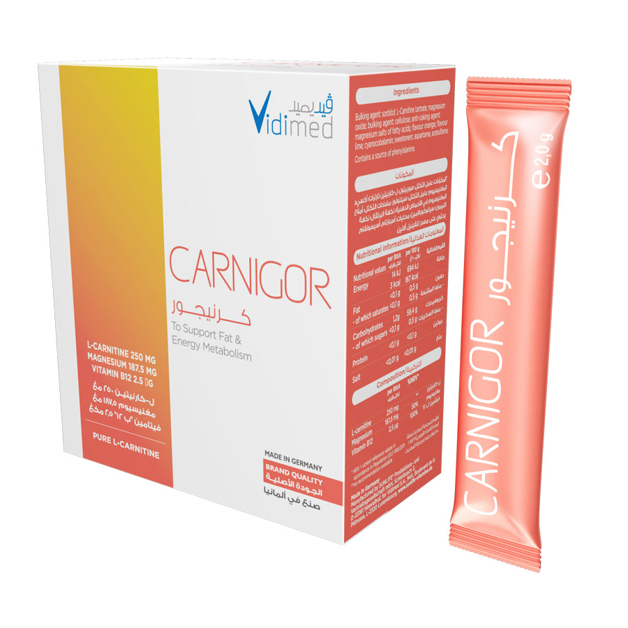 Vidimed Carnigor brings all the benefits of L-carnitine , Magnesium and Vitamin B 12 required to sustain an active lifestyle.